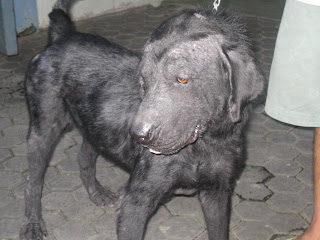 Now, Rex shoves his wet, drooling, still mangy face in my hands whenever he sees me, and rubs his body against my leg. I gave him his first mange bath outside the clinic the other day, after detailed directions from Dr. Marga Carpio, and the sponge came away black—but I’m seeing more of his skin everyday. Most of his wounds have dried up, although I see some fresh ones when thick encrustations of skin fall away. Even his tail is skinny! But he’s gotten more meat on his bones, he doesn’t stink anymore, and I’m seeing patches of his thick black hair growing back. We’re going back to VIP on Saturday for a check-up with Marga.